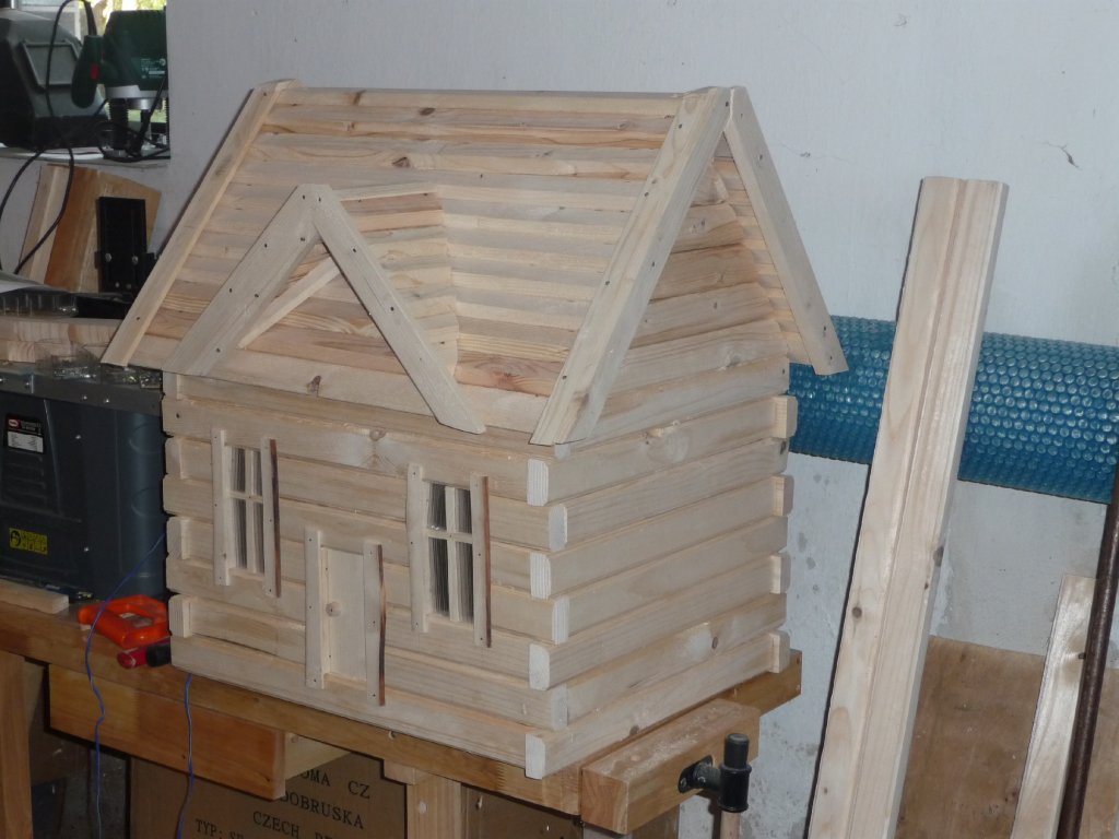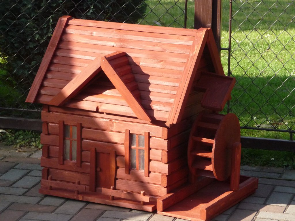 Dřevěný domeček (mlýn) o půdorysu 70x55 cm, výška 55 cm