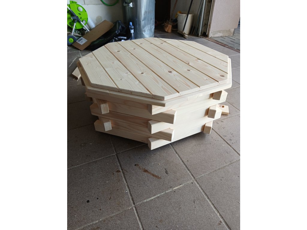 Kryt studny, dle požadavku. Materiál - hoblované sušené hranoly o průřezu 60x40mm, vrchní lem ze sušeného prkna o síle 21 mm, poklop z palubek o síle 19mm.